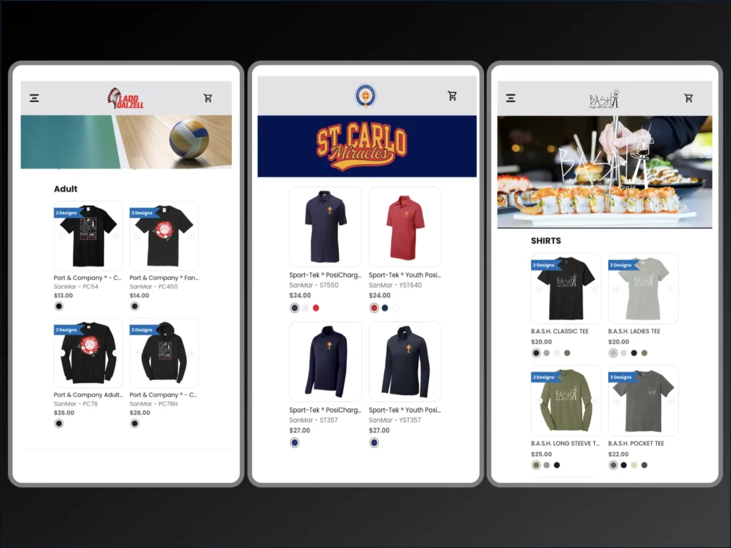 We make it easy to launch custom online stores using our versatile e-commerce platforms, from pop-up team/spirit wear stores, to permanent merch and corporate/workwear stores.